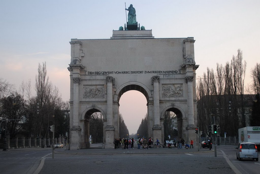 9. April 2010: Kurz vor 7 Uhr am Siegestor in München