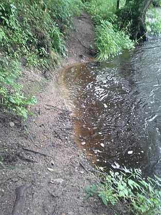 Ich fühle mich noch gut und laufe gleich weiter. Meine Vorräte habe ich fast noch nicht angerührt. Ich laufe zusammen mit Dermot, der ebenfalls ohne Pause weiterläuft. Wir unterhalten uns angeregt, während wir weiterhin alle sechs Minuten einen Kilometer abspulen. Nach gut drei Stunden haben wir bereits 30km hinter uns. Doch so langsam wird die Strecke härter. Immer schmaler werden die Wege, immer öfter geht es durch hohes Gras, Brennnesseln und Brombeerranken. Dazwischen immer wieder ausgedehnte Abschnitte mit tiefem Matsch. Die Suche nach einer halbwegs trockenen Route lässt das Tempo sinken.
