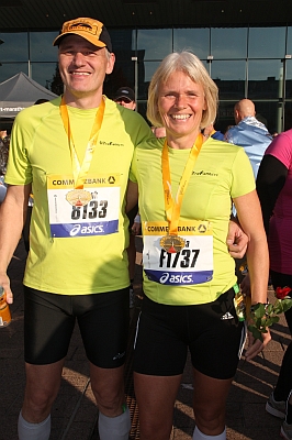 Oder Anna, mit der ich bereits letztes Jahr bei einer Zeit von 4:15 h ins Ziel eingelaufen bin – und diesmal treffen wir uns wieder auf der Strecke und nur wenige Meter vor der Festhalle… Total witzig! :-)))