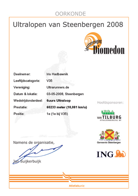 02.-03. Mai 2008: Ultralauf Steenbergen- 6h-Lauf