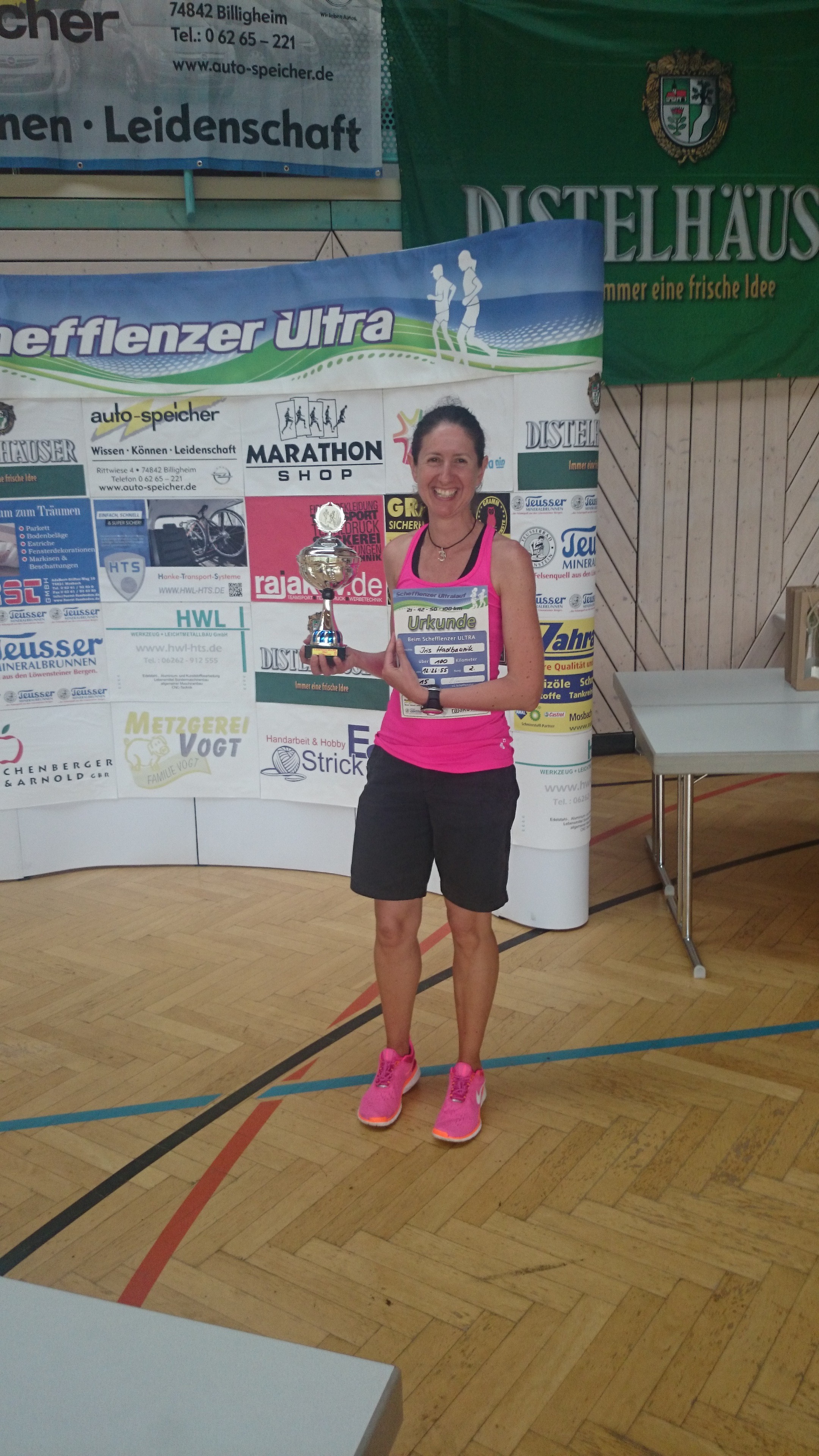 Iris bekam sogar noch einen Pokal, als dritte Frau gesamt!!! Glückwunsch mein Liebes…wenn ich nur auch mal auf Treppchen laufen könnte. 🙁 🙂